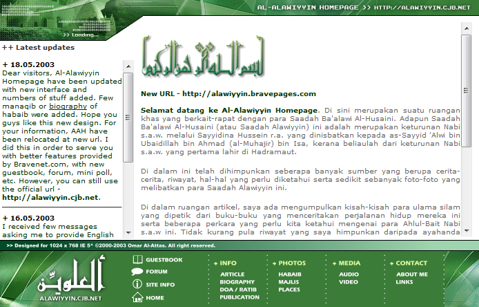 Aku rasa mulai hari ni aku nak masukkan balik semula artikel kat laman web Al-Alawiyyin Homepage yang pernah aku bangunkan dulu sekitar 2000-2003. Sampai la ni terbiar begitu saja disebabkan urusan-urusan duniawi. Banyak feedback yang aku dapat dari kalangan Alawiyyin dulu.. tapi tak sempat pun nak buat. Tak kurang juga yang aku jumpa main copy-paste je artikel yang penat aku type dulu.. huhuhu. Takpe lah berkongsi info katanya.. =)